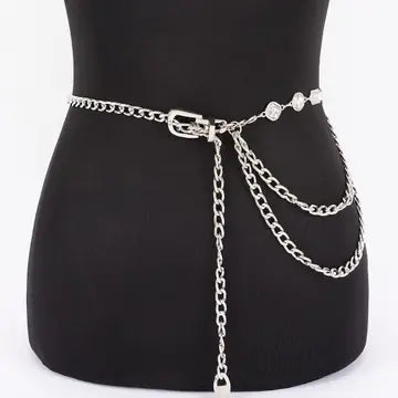 The Stop Waisting Time Belt is a sophisticated accessory designed to elevate any outfit with its dazzling rhinestone chain detail. Crafted from durable iron, this belt measures approximately 0.5 inches in width and 44 inches in length, ensuring a perfect fit for most waist sizes. Its sleek and sturdy construction combines elegance with longevity, making it an ideal choice for both special occasions and everyday wear. The sparkling rhinestones catch the light beautifully, adding a refined touch of glamour while maintaining a lightweight feel. This belt effortlessly enhances your silhouette, providing both style and function in one statement piece.