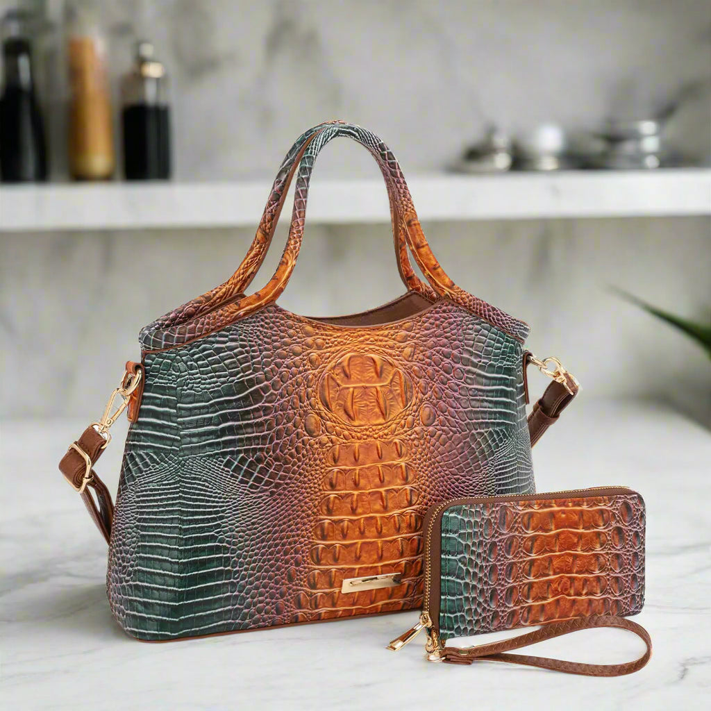 TThe satchel showcases a striking cross-embossed pattern that complements its elegant ombre finish, creating a sophisticated accessory perfect for elevating any ensemble. Crafted with attention to detail, this design adds texture and visual interest, while the gradual color transition enhances its unique aesthetic. Ideal for those seeking a refined yet distinctive bag, this satchel merges style and subtle artistry, making it a versatile choice for both professional settings and casual outings. Its expertly crafted exterior ensures lasting appeal and timeless charm.