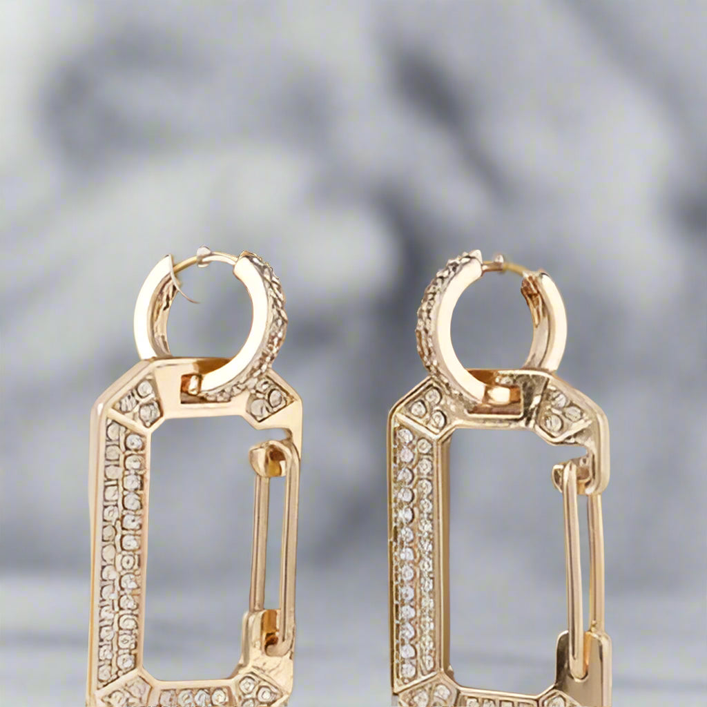 These Rhinestone Carabiner Clip Earrings measure approximately 1 x 1.8 inches, combining functional design with sparkling elegance. Crafted to resemble a carabiner, they provide a modern, industrial-inspired look enhanced by shimmering rhinestones. Lightweight and easy to wear, these earrings add a sophisticated edge to any outfit while ensuring secure comfort throughout the day. Ideal for those who appreciate unique jewelry that seamlessly blends style and practicality.