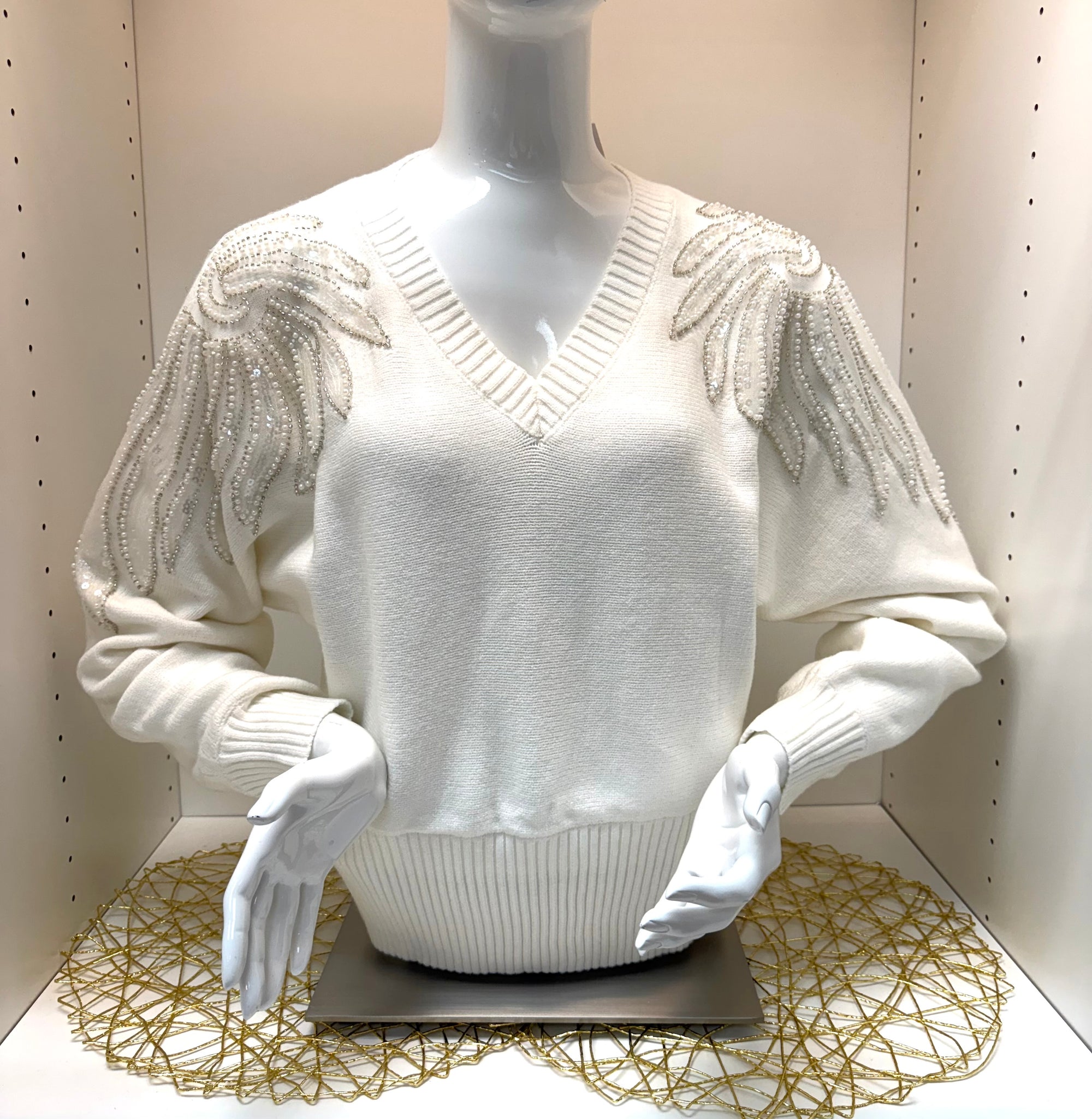 Beaded Feather Shoulder Sweater